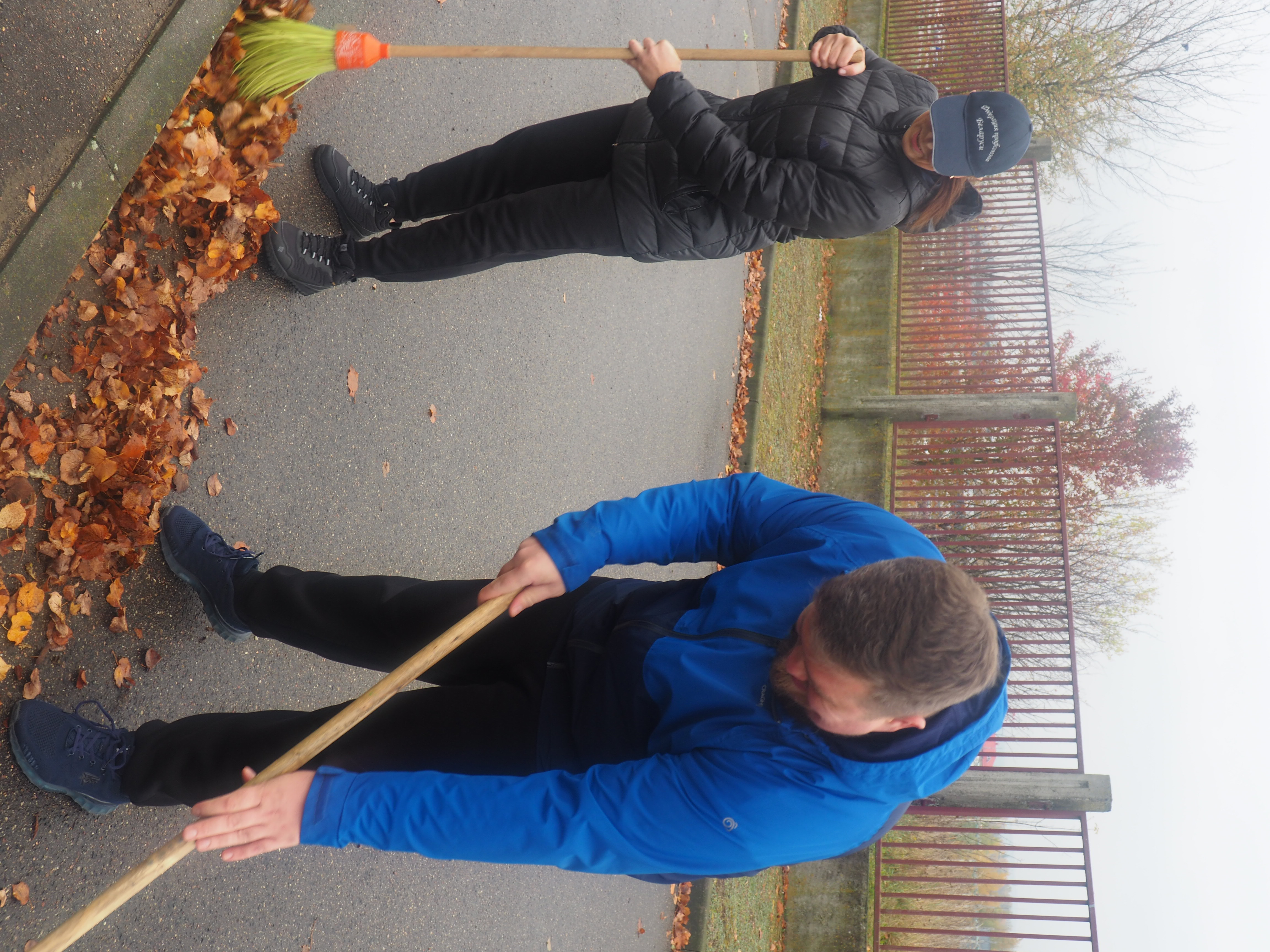 Кто-то занялся ремонтом лестницы, кто-то привел в порядок близлежащую территорию, кто-то убрал осенние листья с тротуара, а кто-то привел в порядок деревья, аккуратно подрезав их ветки — все участники при деле.