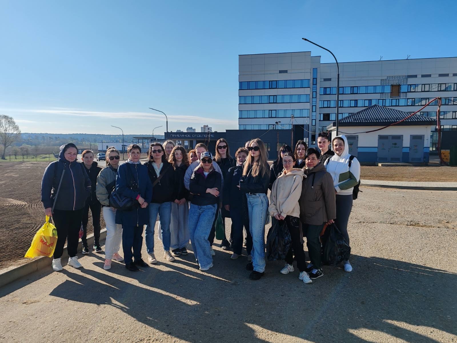 Отправились специалисты Центра и на помощь в уборке участка новой строящейся больницы, чтобы подготовить территорию и больницу к её скорому открытию.